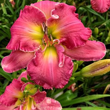 Sensual form and salacious color combine to create this irresistible temptation. These 6 inch gently pleated reflexed pink flowers allure on erect 38 inch scapes with three to four way branching. Fertile both ways.