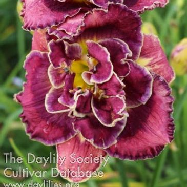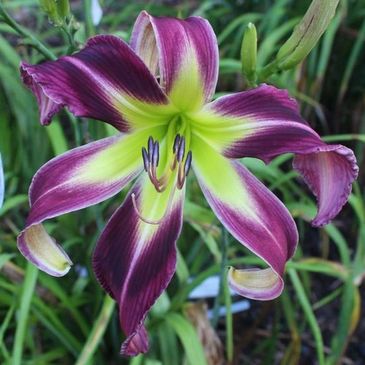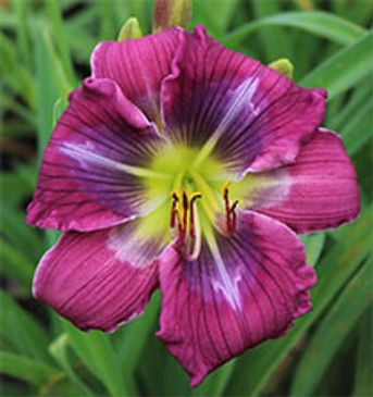 Bright purple self over green to chartreuse throat. High rust resistance Fertile both ways it is also a valuable breeder. The thrips resistance is also very good. The plant is hardy, increases well and recovers well from division.