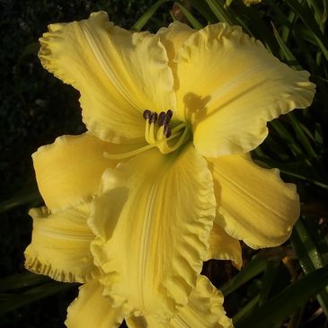Bright yellow, fading through the day to pale cream with glowing golden throat. Substance Of Light stands out with its consistency year after year. The flower substance is strong. The flower holds up well in weather extremes. The plant is low growing with nice branches, scapes between 28" to 35", avera